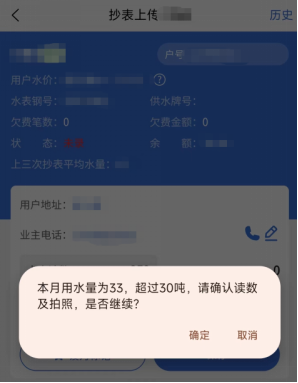 年初,公司完成智慧水務(wù)平臺(tái)營(yíng)收系統(tǒng)升級(jí),新增了手機(jī)抄表、數(shù)電發(fā)票開(kāi)具、掃碼評(píng)價(jià)等功能,其中“手機(jī)抄表”實(shí)現(xiàn)了用水量異常預(yù)警,在實(shí)際運(yùn)用中發(fā)揮了重要作用。在宜城窯灣八隊(duì)武先生家的例行抄表過(guò)程中,公司抄表員范云飛、李一可通過(guò)“手機(jī)抄表”系統(tǒng)錄入數(shù)據(jù)時(shí),“抄表上傳”頁(yè)面自動(dòng)彈出“本次用水量超過(guò)30噸”的提醒。經(jīng)與用戶過(guò)往平均用水量對(duì)比后,抄表員確認(rèn)該用戶本季度用水量遠(yuǎn)超日常,并在進(jìn)一步觀察中發(fā)現(xiàn)水表持續(xù)緩慢轉(zhuǎn)動(dòng),判斷用戶表后可能存在漏水點(diǎn)。